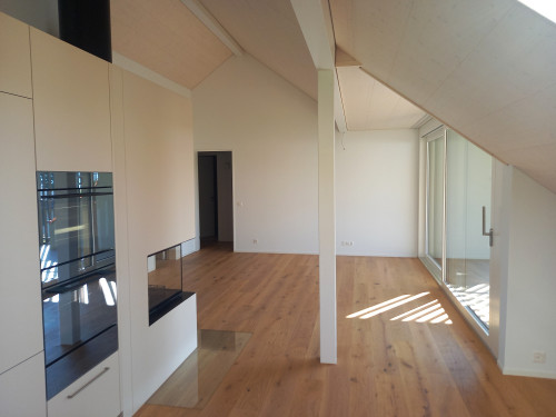 Das bestehende Bürogebäude wird in ein Wohnhaus mit 3 Eigentumswohnungen umgebaut. Zwei Anbauten erweitern das Gebäude mit Balkone und einem Lift. Zeitgleich erfolgt die energetische Sanierung des Nachbargebäudes und der Ersatz der bestehenden Ölheizung durch eine Wärmepumpe für das ganze Quartier.