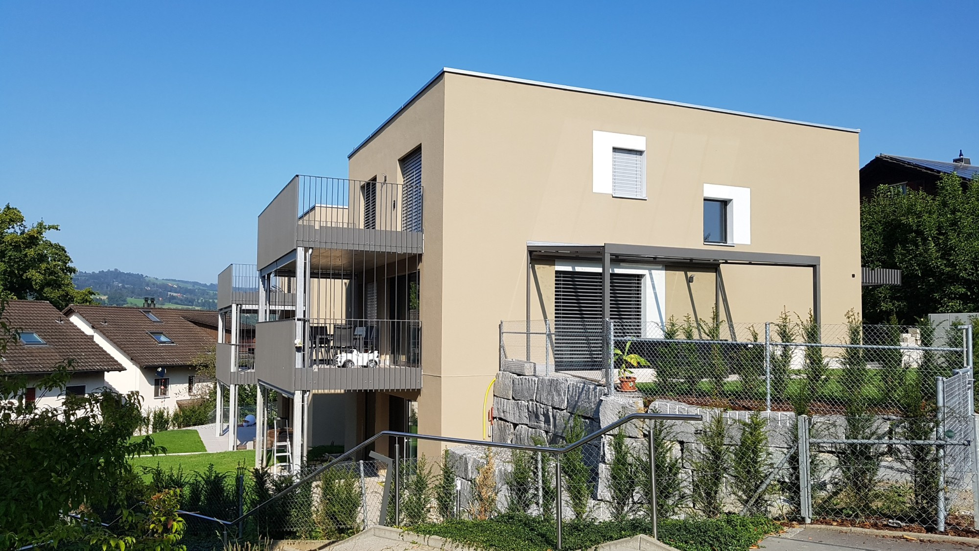 In Hochdorf an der Ligschwilstrasse entstanden drei grosszügige Einfamilienhäuser mit Carport und vorgelagertem Balkon.